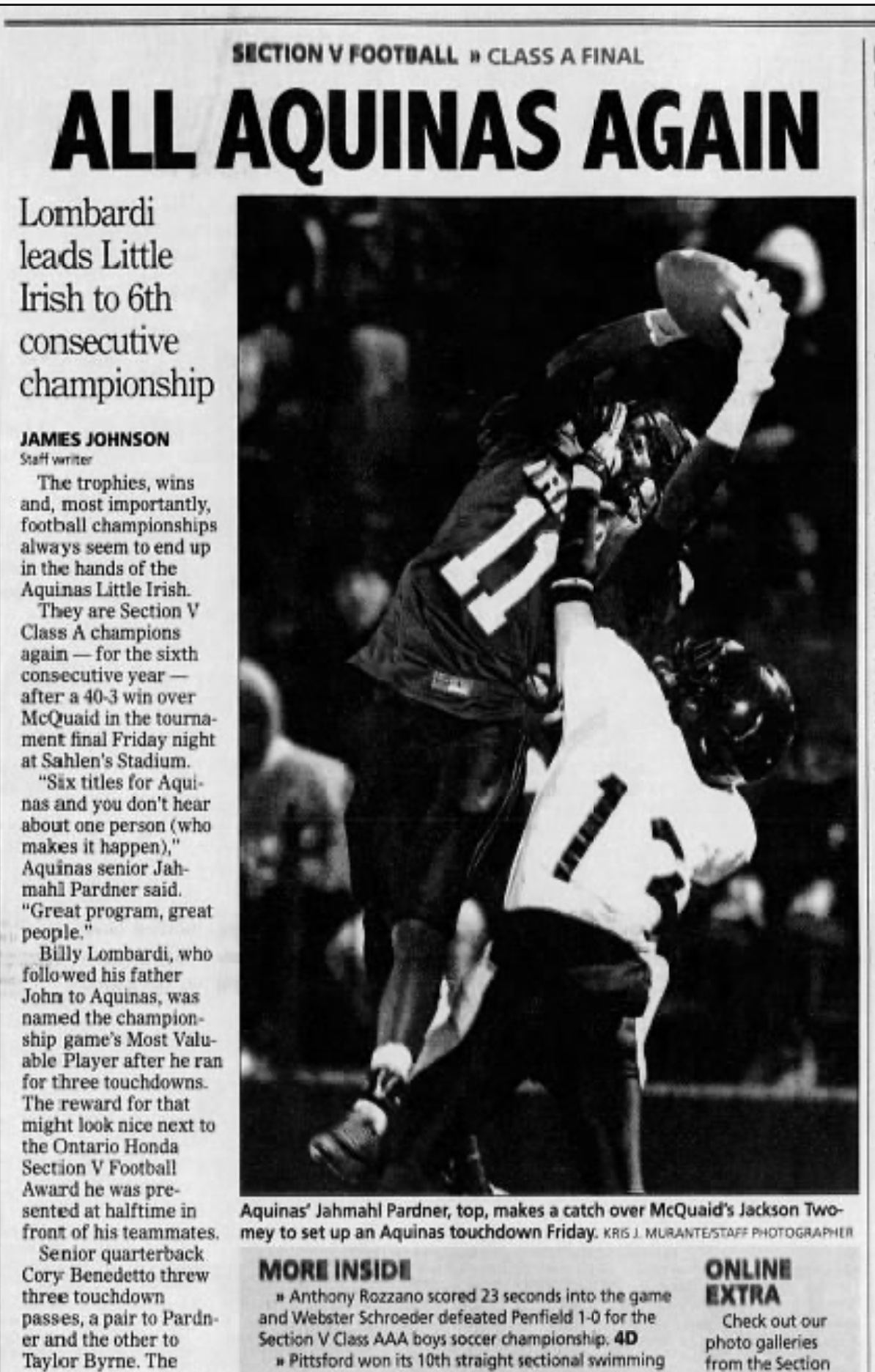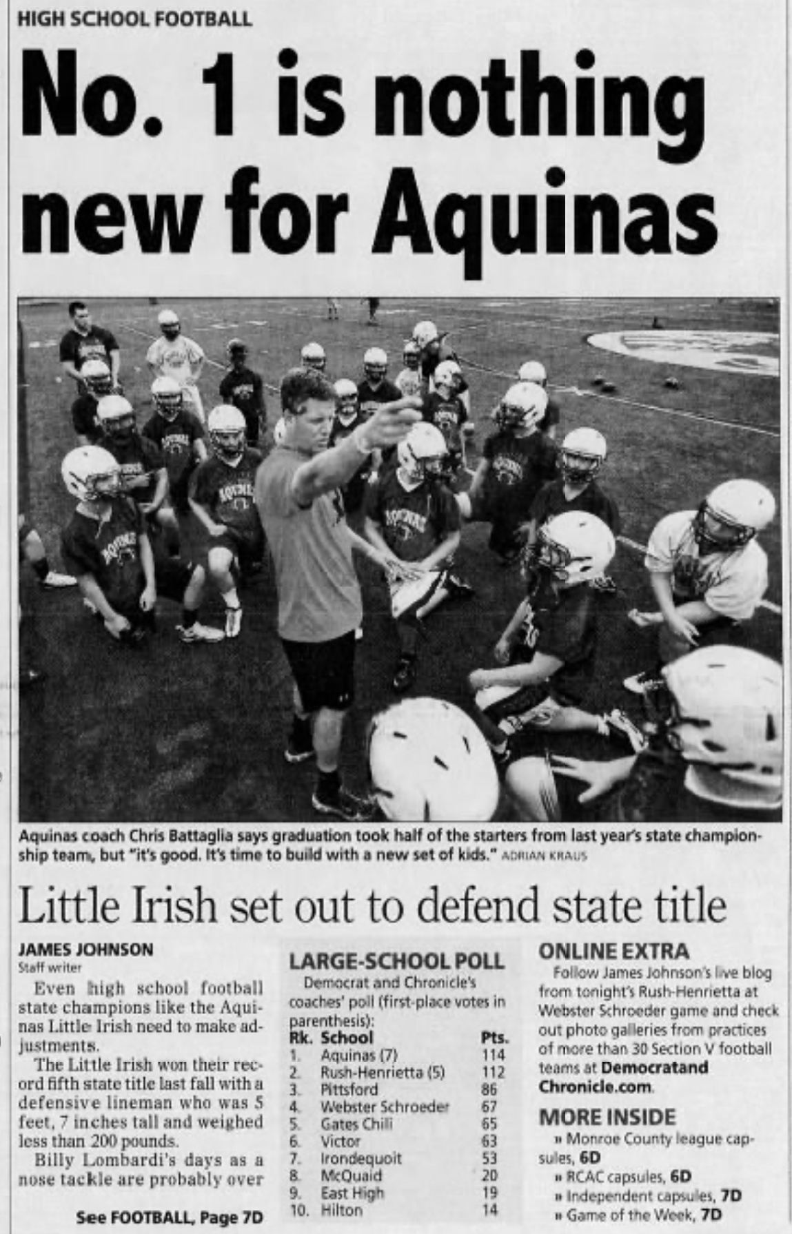 Aquinas was looking to become back to back state champs for the second time in program history as well as a sixth straight Section 5 championship