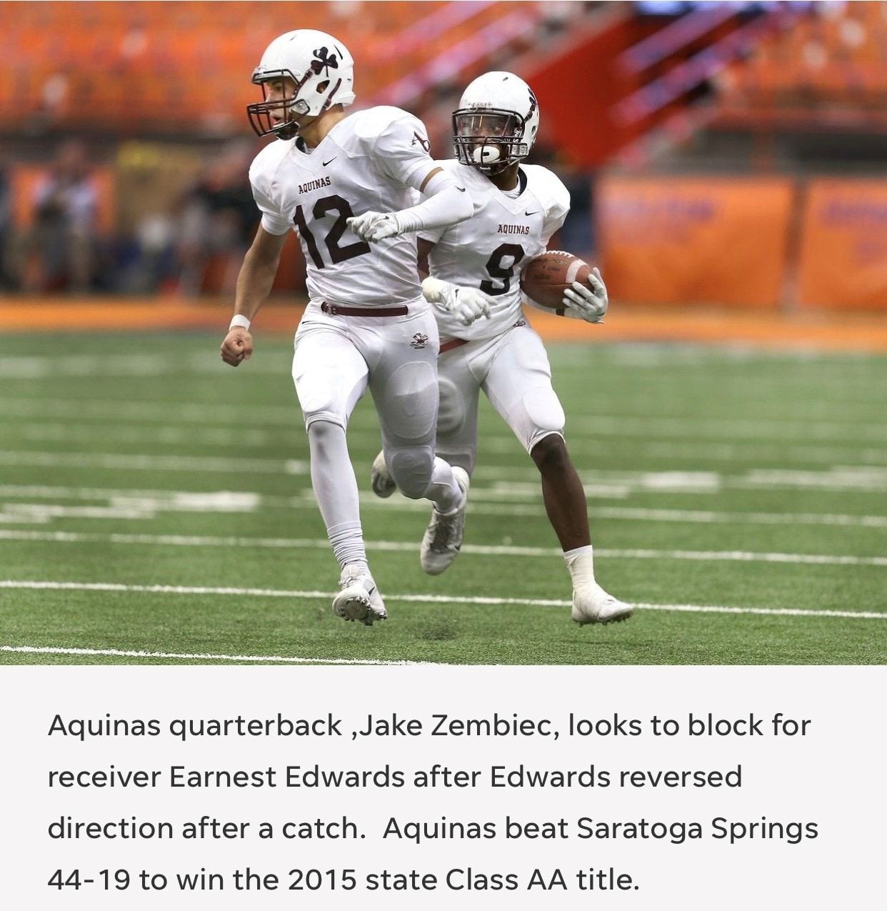 MVP Earnest Edwards caught five passes for 286 yards and scored four touchdowns to help Aquinas win their 7th state title.
