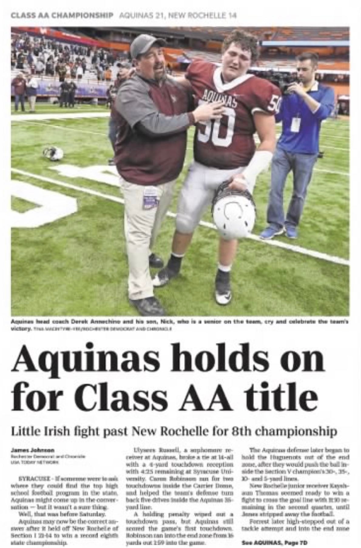 Aquinas defeated New Rochelle 21-14 for their record 8th state championship.